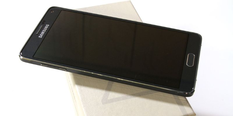 • Chất liệu kim loại và nhựa: Note 4 sở hữu khung viền kim loại chắc chắn, mặt lưng nhựa giả da giúp cầm nắm tốt hơn.